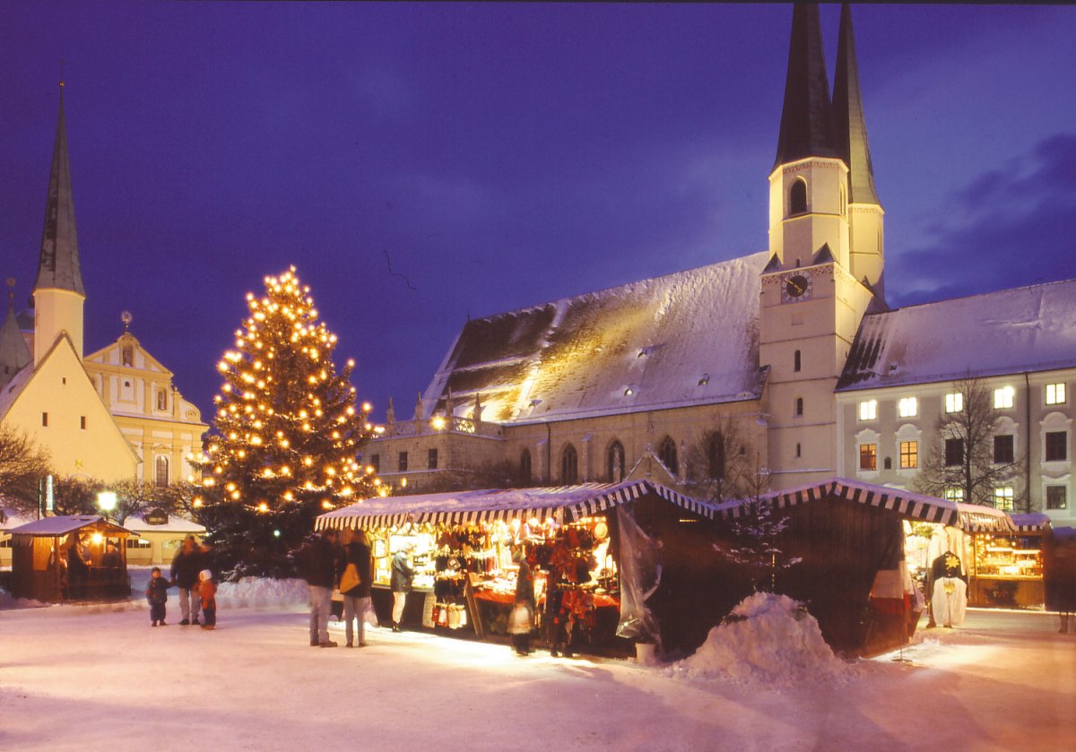 In der Vorweihnachtszeit vermittelt die oberbayerische Wallfahrtsstadt eine einzigartig heimelige Atmosphäre, die in besonderer Weise auf das „Schönste Fest des Jahres“ einstimmt und die durch die gelebte Krippentradition noch unterstrichen wird. Der Kapellplatz mit den prächtigen Barockgebäuden beherbergt einen der schönsten Weihnachtsmärkte Deutschlands. Wer so richtig eintauchen will in die vorweihnachtliche Zeit, der ist dann auf der Halsbacher Waldweihnacht richtig. Hier steht nicht nur ein Baum – hier stehen „hunderte“! In traumhafter Kulisse und inmitten tausender Lichter kann man einen unverwechselbaren Tag erleben.