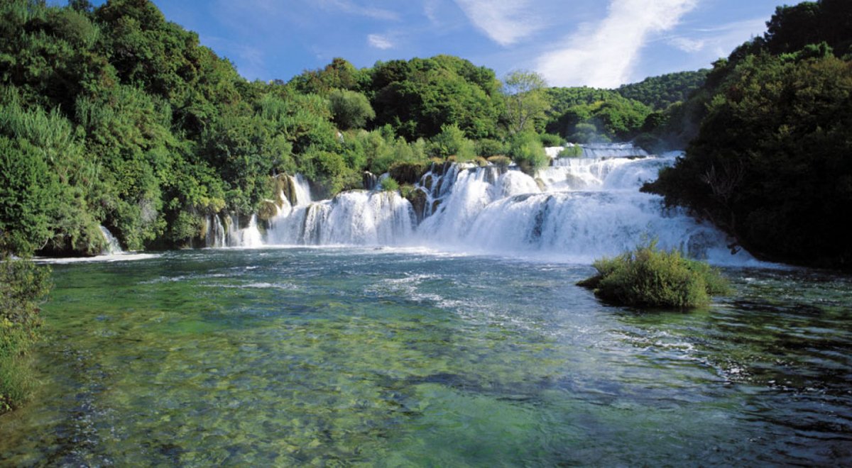 Erleben Sie den Nationalpark Krka mit seinem berühmten Wasserfall bei Skradin – ein Naturjuwel mit beeindruckenden Kaskaden und smaragdgrünem Wasser. Genießen Sie die einzigartige Landschaft bei einem Spaziergang entlang der Wasserwege.