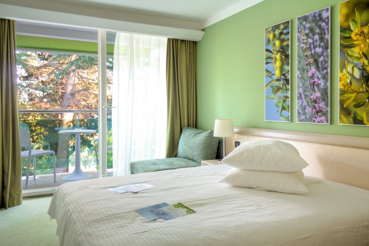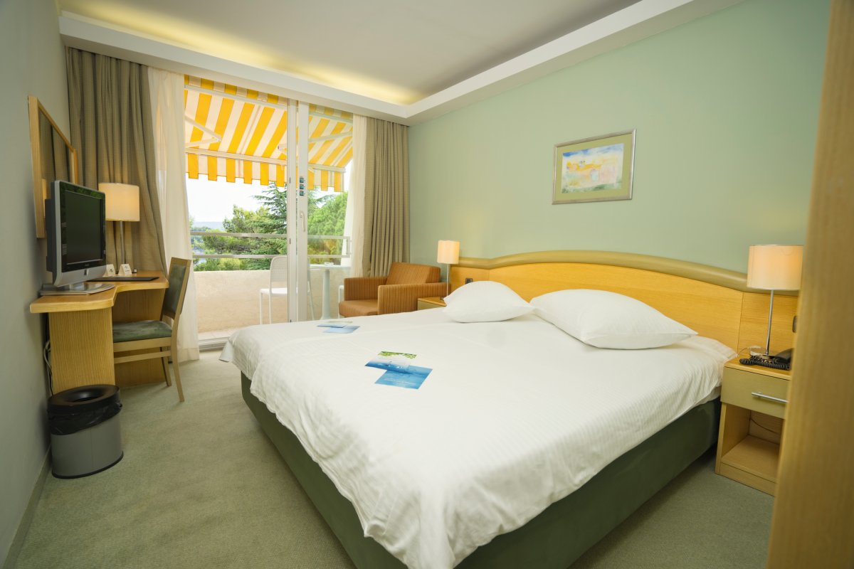 Bezaubernde Inseldörfer, wildromantische Kiesstrände und einsame Felsenbuchten machen die Insel Cres zu einem der schönsten Orte Kroatiens. Die Herrschaft der Venezianer hat ihre Spuren hinterlassen: Die engen Gassen formen ein Labyrinth in der Altstadt, die Fassaden der Häuser strahlen in Ockergelb und Weinrot und die Kirchtürme könnten auch in Venedig stehen. Das Hotel Kimen liegt in einem einzigartigen Naturpark mit mediterraner Vegetation am Rande des Strandes und ist eine Oase der Ruhe. Alle Zimmer verfügen über einen Balkon mit einem entspannenden Blick auf das Meer oder die Parkseite. Jedes Zimmer hat ein Badezimmer, Klimaanlage, Telefon, Sat-TV und Minibar.