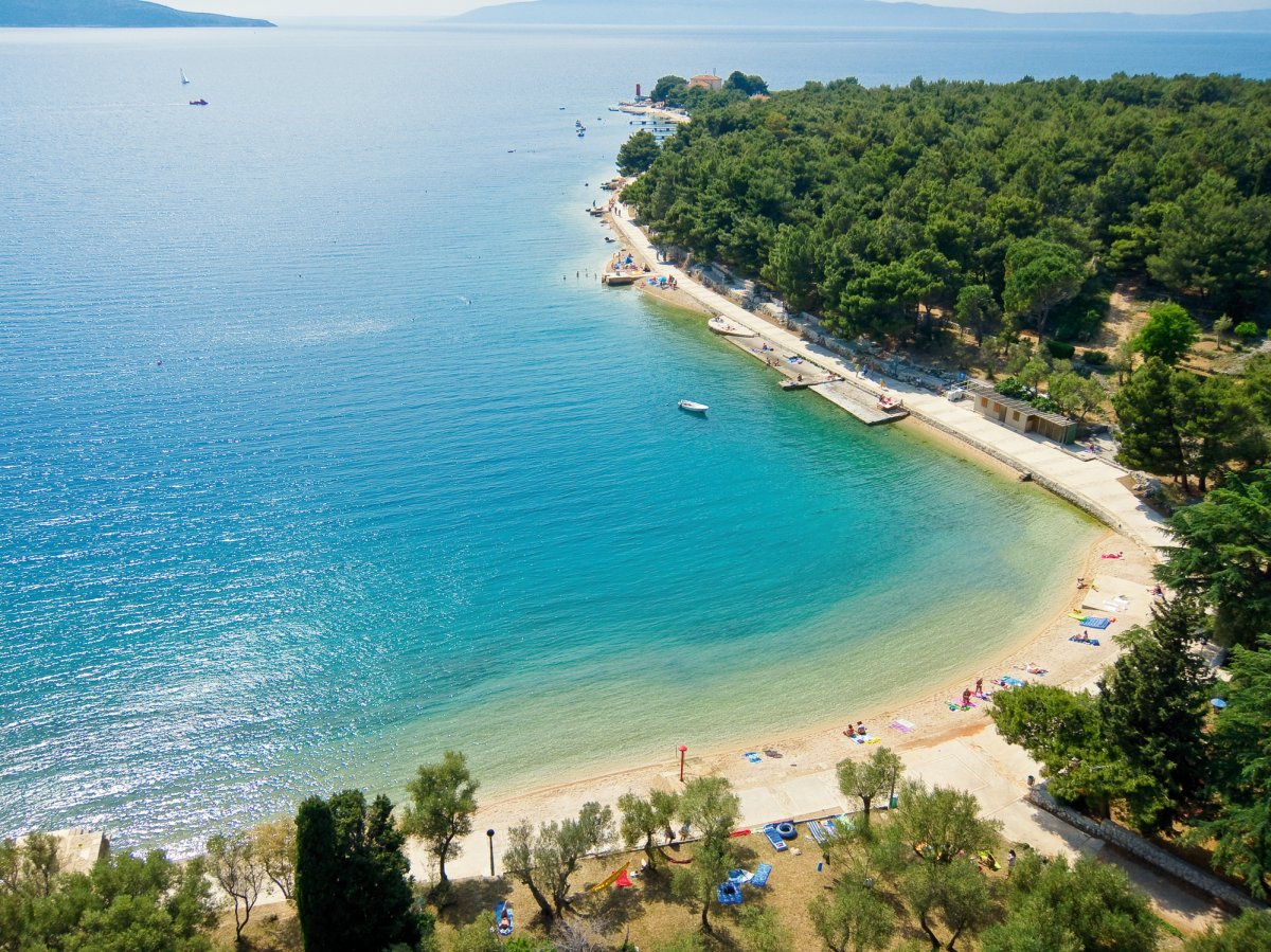 Der hoteleigene, etwa 80 m entfernte, flach abfallende Kiesstrand, inmitten schattiger Pinien in einer windgeschützten Bucht, lädt zum Schwimmen im glasklaren Meer ein. Weitere traumhafte Strände sind zu Fuß erreichbar. Dabei geht man über Jahrhunderte alte Pfade zwischen Trockenmauern, dem Grün der Olivenbäume und des Wacholders und dem Duft von Salbei, Rosmarin, Pfefferminze und Thymian. Organisierte Bootsausflüge werden in der Stadt Cres täglich angeboten (z.B. zur „Blauen Grotte“ (fak.), nur vor Ort buchbar). Ausflüge in die kleine Ortschaft Valun mit einem der wichtigsten Kulturschätze Kroatiens, den Tafeln von Valun, oder in das pittoreske Lubenice, auf einem 378 m hohen Felsplateau mit einmaligem Ausblick auf das Meer gelegen, werden vom Hotel angeboten (fak.) nur vor Ort buchbar). Oder Sie erkunden einfach die Stadt Cres. Der größte Ort der Insel liegt am Ende einer gut geschützten Bucht auf der Westseite der Insel. Die prähistorischen Gebäude und die antike Festung Crepsa zeugen von der langen und reichhaltigen Geschichte der Insel. Die Altstadt, umgeben von rechteckigen Mauern mit fünf Türmen und mehreren Stadttoren, entstand vor dem Ende der venezianischen Herrschaft und hat bis heute weitgehend ihr ursprüngliches Aussehen bewahrt.