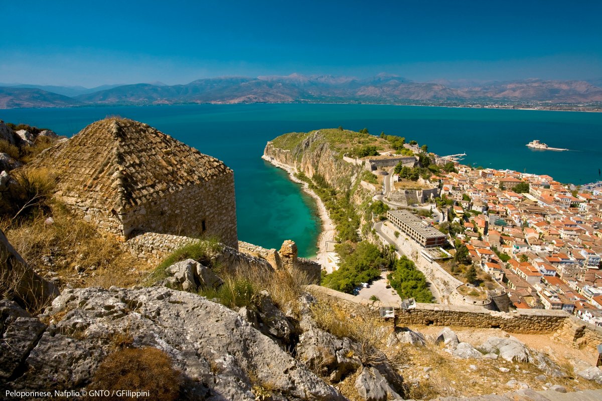 Die Altstadt von Nauplia liegt auf einer Halbinsel unterhalb des Burgbergs Akronauplia. Bootsfahrt zur kleinen Insel mit der Bourtzi-Festung. In Tiryns, auf einem 30 m hohen Kalkfelsen gelegen, sehen wir die gut erhaltenen Reste einer mykenischen Residenz und die meterdicken Befestigungsmauern. Besichtigung von Mykene, einer der bedeutendsten Städte Griechenlands, mit Ruinen der Oberstadt, Resten der zyklopischen Ringmauer, dem Löwentor und den großen Kuppelgräbern (z.B. Schatzhaus des Atreus, Schatzhaus der Klytaimnestra).