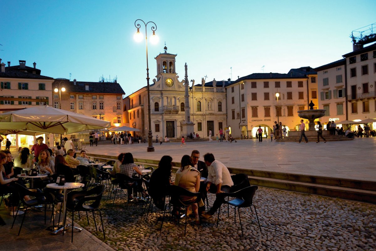 Mit der Piazza Liberta besuchen wir den Hauptplatz mit Renaissance Atmosphäre. Er wurde auch schon als einer der schönsten Stadtplätze Norditaliens bezeichnet. Die Besucher der Stadt werden vom offenen Arkadenplatz des ehemaligen Rathauses Loggia del Lionello in venezianischer Gotik empfangen. Daneben der Glockenturm nach venezianischem Vorbild und der Aufgang zur Burg. Weiters sehr sehenswert ist der Duomo di Udine, im gotischen Baustil und mit Fresken von Tiepolo in der Sakramentskapelle. Öffentlich zugängliche Fresken von Tiepolo finden wir auch im Treppenhaus des Erzbischöflichen Palastes Palazzo Arcivescovile auf der Piazza Patriarcato vor. Auf dem hübschen, viereckigen Platz Piazza Matteotti fand früher der Markt statt, Häuser mit Arkaden umgeben ihn, wie die malerischen Straßen mit zahlreichen Geschäften. Die vielen Lokale der Piazza laden zum Verweilen ein. Typisch für die Stadt sind die stuzzichini, Häppchen wie belegte Brötchen oder Käsestücke. Die historischen Osterien Udines sind bekannt als sehr alte, charmante Gastwirtschaften, deren Mobiliar bewusst nicht gegen Neumodisches getauscht wird. Probieren Sie abends einen der vielen Weine aus der direkten Nachbarschaft der Stadt.