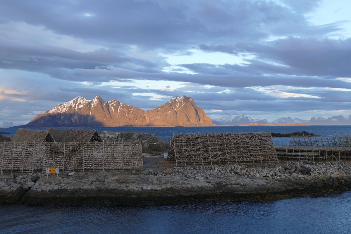 Unser Tag beginnt am Strand von Haukland, der als einer der schönsten Strände der Lofoten gilt. Von hier aus starten wir zu einer etwa 2,5-stündigen, leichten Rundwanderung entlang der Küste um den Berg Veggen. Die Strecke bietet spektakuläre Ausblicke auf das Meer und die umliegenden Felsen – mit etwas Glück lassen sich unterwegs Wale und Seeadler beobachten. Ein kleiner Abstecher führt uns nach Egglum, einem malerischen Fischerdorf an der Westküste. Hier können wir die Überreste einer ehemaligen deutschen Radarstation aus dem Zweiten Weltkrieg besichtigen und die beeindruckende Küstenlandschaft genießen. Ein besonderes Highlight ist die Skulptur „Hode“ des Schweizer Künstlers Markus Raetz, die je nach Blickwinkel ihre Form verändert und ein faszinierendes Kunstwerk inmitten der Natur darstellt. Weiter geht es zum Wikingermuseum Borg, wo uns ein originalgetreu rekonstruiertes Langhaus erwartet, ergänzt durch spannende Ausstellungen, die das Leben der Wikinger anschaulich und lebendig vermitteln. Ein Höhepunkt der Reise ist der Besuch von Henningsvær, das sich malerisch auf mehreren kleinen Inseln erstreckt. Bei einem Spaziergang durch das Fischerdorf lassen sich bunte Häuser, kleine Kunstgalerien und lokale Handwerksläden erkunden. Henningsvær ist nicht nur ein beliebtes Fotomotiv, sondern vermittelt auch einen lebendigen Eindruck vom Alltag auf den Lofoten. Übernachtung in Storkmarknes.