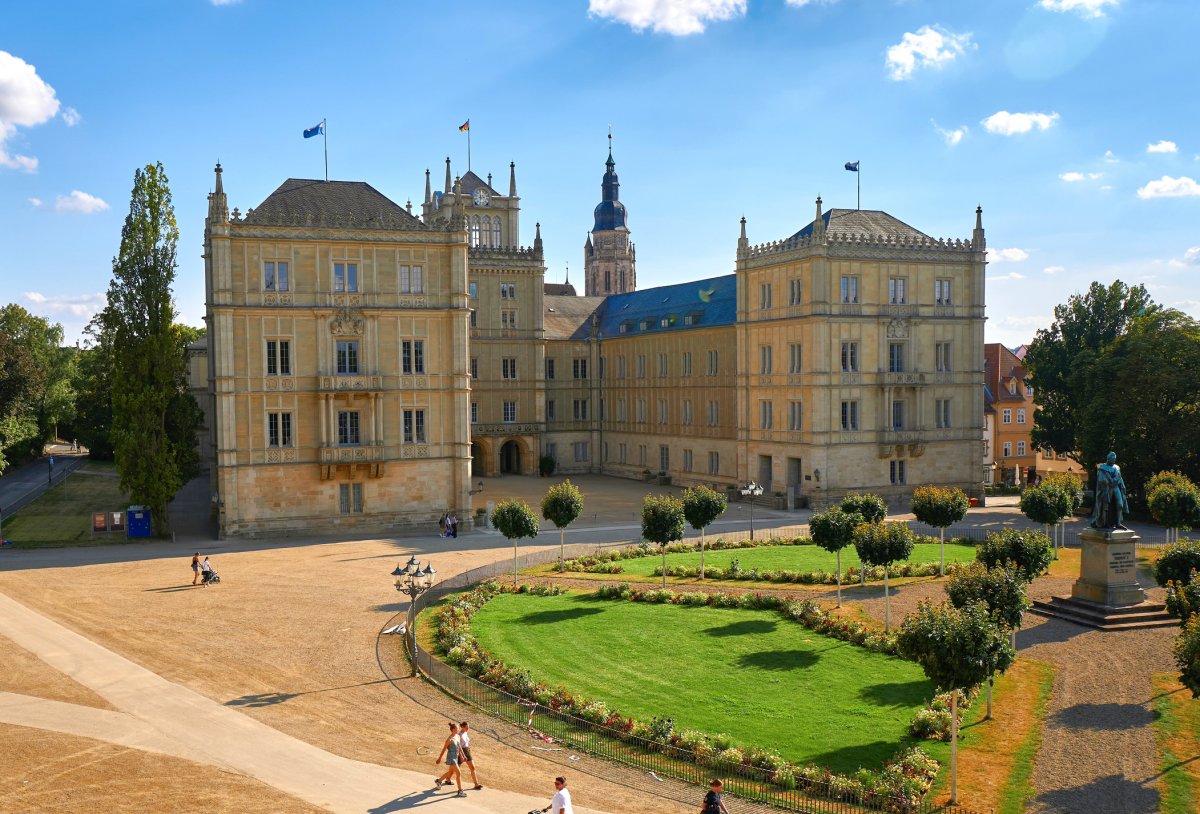 Vor 200 Jahren wurde das Herzogtum Sachsen-Coburg und Gotha gegründet. Wir lernen Schloss Ehrenburg kennen, eines der ehemaligen Residenzschlösser der Herzöge von Sachsen-Coburg und Gotha und beeindruckendes Beispiel der romantischen Architektur von K. F. Schinkel. Anschließend unternehmen wir noch einen Stadtrundgang durch Meiningen, wo bis heute Musik und Theater eine zentrale Rolle spielen.