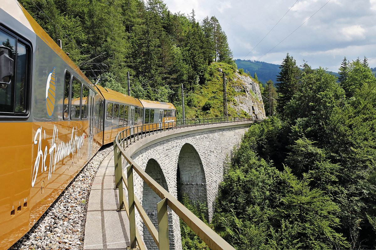 Zuerst erleben wir eine interessante Führung mit Verkostung in einer bekannten Naturkosmetik- und Schokoladenmanufaktur. Nach einem gemütlichen Mittagessen mit leckeren, knusprigen Stelzen geht es mit einem modern ausgestatten Niederflurtriebwagen „Himmelstreppe“ in einer ca. 1-stündigen vom Bahnhof Laubenbachmühle über die Erlaufklause und vorbei am Erlaufsee nach Mariazell. Beeindruckende Ausblicke begleiten die Fahrt, insbesondere im Naturpark Ötscher-Tormäuer, wo der markante Ötscher stets im Blickfeld bleibt.