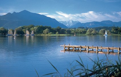 Der Rundweg um den Chiemsee ist einer der schönsten Fahrradwege im Voralpenland. Er verläuft teilweise direkt am Ufer entlang und bietet mit den Bergen im Hintergrund ein herrliches See- und Alpenpanorama.