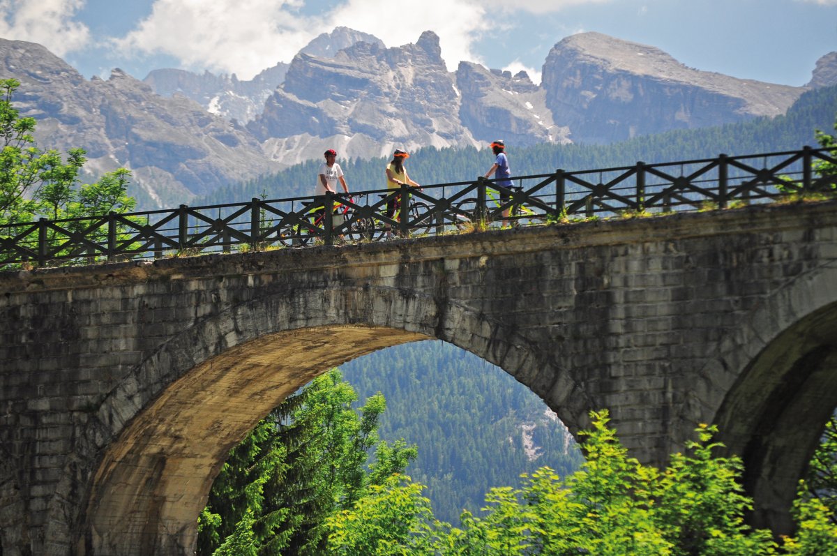 Wir begeben uns auf den Dolomitenradweg, der auf der Trasse der ehemaligen Dolomitenbahn verläuft. Zahlreiche Tunnel, beeindruckende Viadukte und einzigartige Blicke auf die Felsen der Dolomiten, allen voran die die bekannten „Drei Zinnen“, erwarten uns auf dem Weg in den berühmten italienischen Wintersportort Cortina d‘Ampezzo. Pause in dem als Königin der Dolomiten bezeichneten Ort, der ein beliebter Filmdrehort (James Bond) ist und auch Austragungsort der Olympischen Winterspiele 1956 und 2026 war/ist. Er war auch einmal ein Teil der Habsburgermonarchie. Weiter geht‘s bis nach Pieve di Cadore, wo der berühmte Maler Tizian geboren wurde. Der Dolitenradweg verläuft auch auf nicht asphaltierten Wegen.