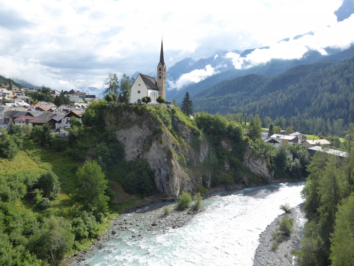 Wir lassen den malerischen Dorfplatz von Scuol mit den alten Engadinerhäusern hinter uns und fahren in Richtung österreichischer Grenze. Auf dem historischen Handelsweg, der „Via Claudia Augusta“ radeln wir zur alten Grenzfeste Alfinstermünz. Weiter geht es über saftige Tiroler Wiesen von Felswänden und Berghängen begleitet nach Pfunds.