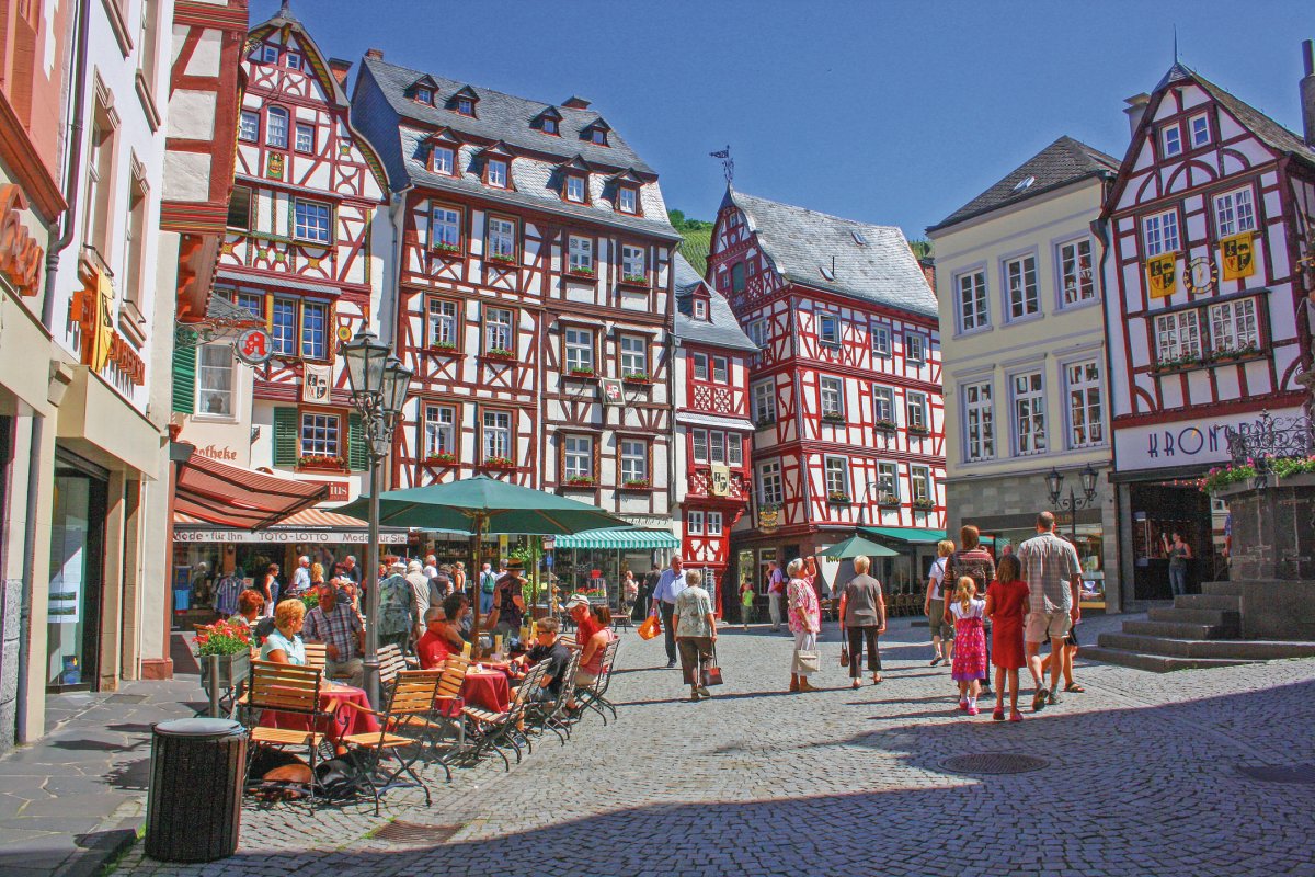 Bei Trier führt unsere Radtour ins malerische Moseltal auf die „Weinstraße der Römer“. Schon bald beginnt der typische Flusslauf mit seinen zahlreichen Schleifen. Die Mosel entlang radeln wir vorbei an römischen Ruinen und Grenzsteinen durch das älteste Weinbaugebiet Deutschlands. Ziel unserer Fahrt ist der berühmte Weinort Bernkastel-Kues mit seinem von herrlichen Fachwerkhäusern umgebenen Marktplatz.